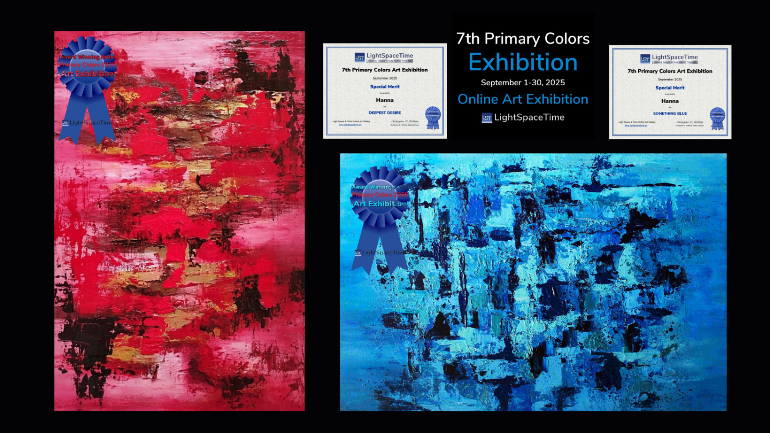 Hanna is pleased to share that two of her artworks won out of 1,165 entries from 30 countries from Light Space Time's 2nd Annual 555 Special International Art Exhibition.