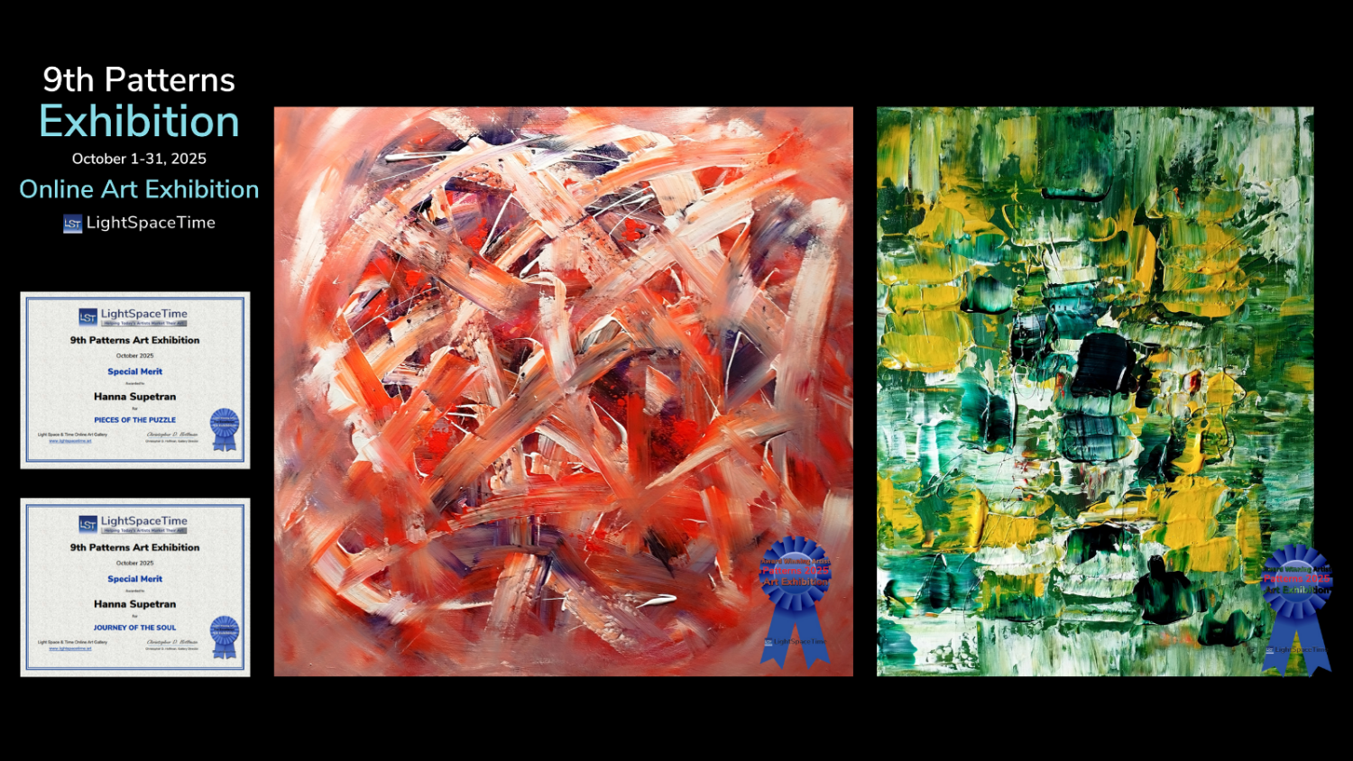 Journey of the Soul & Pieces of the Puzzle received a Special Merit Awards for Outstanding Arts from Light Space & Time recently concluded 9th “Patterns, Textures & Forms” 2025 Art Exhibition.